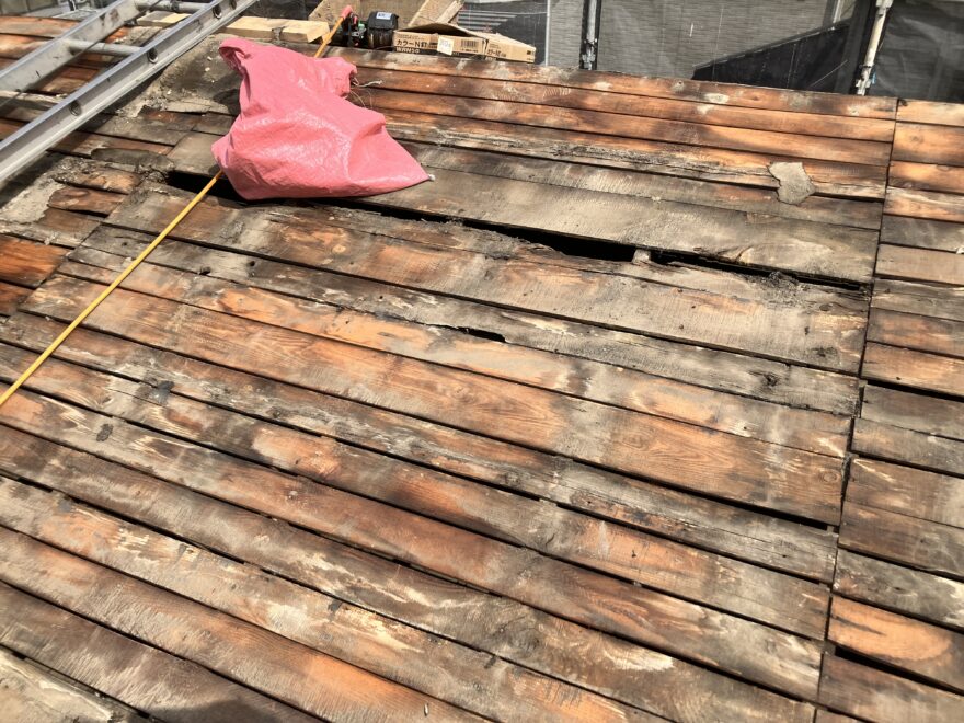 瓦・防水シートを撤去した後に清掃した画像です